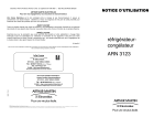 Electrolux Home Products France S.A.S. au capital de 67 500 000 - 552 042 285 RCS SENLIS ZANUSSI Pour tenir nos engagements, nous écoutons les Consommateurs Info Conso Electrolux est le lien privilégié entre la marque et ses Consommateurs. Il assure en permanence une double mission : satisfaire au mieux vos exigences et tirer parti de cette proximité pour améliorer sans cesse les produits que nous vous proposons. AVANT L’ACHAT Toute une équipe répond avec clarté et précision à vos sollicitations concernant l’éventail de nos gammes de produits et vous apporte des infos pour vous aider dans votre choix en fonction de vos propres besoins. REFRIGERATEURCONGELATEUR ZI 9280 D APRÈS L’ACHAT Exprimez-vous sur la perception que vous avez de nos produits et votre satisfaction à l’usage. Mais interrogez aussi nos spécialistes sur l’utilisation et l’entretien de vos appareils. C’est alors que notre mission prend tout son sens. Ecouter, comprendre, agir : trois temps essentiels pour tenir l’engagement de la marque dans le plus grand respect du Consommateur. A bientôt ! Dans le souci d’une amélioration constante de nos produits, nous nous réservons le droit d’apporter à leurs caractéristiques toutes modifications liées à l’évolution technique (décret du 24.03.78). ISO 9OO1 VERSION 2000 BP 50142 – 60307 SENLIS CEDEX Tél. : 08 90 71 03 44 (0,15 TTC/mn) Fax : 03 44 62 21 54 E-MAIL : info.conso@electrolux.fr Permanence téléphonique du lundi au vendredi Pour toute question technique : Centre Contact Consommateurs BP 20139 – 60307 SENLIS CEDEX Tél. : 08 92 68 24 33 (0,34 TTC/mn) E-MAIL : ehp.consommateur@electrolux.fr Permanence téléphonique du lundi au vendredi NOTICE D’UTILISATION 2223 191-41 /RUVGHVDIDEULFDWLRQFHWDSSDUHLODpWpFRQVWUXLWVHORQGHVQRUPHVGLUHFWLYHVHWRXGpFUHWVSRXUXQHXWLOLVDWLRQ VXUOHWHUULWRLUHIUDQoDLV 3RXUODVpFXULWpGHVELHQVHWGHVSHUVRQQHVDLQVLTXHSRXUOHUHVSHFWGHO¶HQYLURQQHPHQWYRXVGHYH] G¶DERUGOLUHLPSpUDWLYHPHQWOHVSUpFRQLVDWLRQVVXLYDQWHVDYDQWWRXWHXWLOLVDWLRQGHYRWUHDSSDUHLO 3RXUpYLWHUWRXWULVTXHGHGpWpULRUDWLRQGHO¶DSSDUHLOWUDQVSRUWH]OHGDQVVDSRVLWLRQG¶XWLOLVDWLRQPXQLGH VHVFDOHVGHWUDQVSRUW VHORQPRGqOH $X GpEDOODJH GH FHOXLFL HW SRXU HPSrFKHU GHV ULVTXHV G¶DVSK\[LH HW FRUSRUHO WHQH] OHV PDWpULDX[ G¶HPEDOODJHKRUVGHODSRUWpHGHVHQIDQWV 3RXU pYLWHU WRXW ULVTXH PRELOLHU LPPRELOLHU FRUSRUHO« O¶LQVWDOODWLRQ OHV UDFFRUGHPHQWV HDX JD] pOHFWULFLWppYDFXDWLRQVHORQPRGqOH ODPLVHHQVHUYLFHHWODPDLQWHQDQFHGHYRWUHDSSDUHLOGRLYHQWrWUH HIIHFWXpVSDUXQSURIHVVLRQQHOTXDOLILp 9RWUHDSSDUHLODpWpFRQoXSRXUrWUHXWLOLVpSDUGHVDGXOWHV,OHVWGHVWLQpjXQXVDJHGRPHVWLTXHQRUPDO 1HO¶XWLOLVH]SDVjGHVILQVFRPPHUFLDOHVRXLQGXVWULHOOHVRXSRXUG¶DXWUHVEXWVTXHFHX[SRXUOHVTXHOVLOD pWpFRQoX9RXVpYLWHUH]DLQVLGHVULVTXHVPDWpULHOHWFRUSRUHO 'pEUDQFKH] YRWUH DSSDUHLO DYDQW WRXWH RSpUDWLRQ GH QHWWR\DJH PDQXHO 1¶XWLOLVH] TXH GHV SURGXLWV GX FRPPHUFH QRQ FRUURVLIV RX QRQ LQIODPPDEOHV 7RXWH SURMHFWLRQ G¶HDX RX GH YDSHXU HVW SURVFULWH SRXU pFDUWHUOHULVTXHG¶pOHFWURFXWLRQ 6LYRWUHDSSDUHLOHVWpTXLSpG¶XQpFODLUDJHGpEUDQFKH]O¶DSSDUHLODYDQWGHSURFpGHUDXFKDQJHPHQWGH O¶DPSRXOH RXGXQpRQHWF SRXUpYLWHUGHV¶pOHFWURFXWHU $ILQ G¶HPSrFKHU GHV ULVTXHV G¶H[SORVLRQ HW G¶LQFHQGLH QH SODFH] SDV GH SURGXLWV LQIODPPDEOHV RX G¶pOpPHQWVLPELEpVGHSURGXLWVLQIODPPDEOHVjO¶LQWpULHXUjSUR[LPLWpRXVXUO¶DSSDUHLO /RUVGHODPLVHDXUHEXWGHYRWUHDSSDUHLOHWSRXUpFDUWHUWRXWULVTXHFRUSRUHOPHWWH]KRUVG¶XVDJHFH TXL SRXUUDLW SUpVHQWHU XQ GDQJHU FRXSH] OH FkEOH G¶DOLPHQWDWLRQ DX UDV GH O¶DSSDUHLO ,QIRUPH]YRXV DXSUqVGHVVHUYLFHVGHYRWUHFRPPXQHGHVHQGURLWVDXWRULVpVSRXUODPLVHDXUHEXWGHO¶DSSDUHLO 5HVSHFWH] OD FKDvQH GH IURLG GqV O¶DFTXLVLWLRQ G¶XQ DOLPHQW MXVTX¶j VD FRQVRPPDWLRQ SRXU H[FOXUH OH ULVTXHG¶LQWR[LFDWLRQDOLPHQWDLUH 9HXLOOH]PDLQWHQDQWOLUHDWWHQWLYHPHQWFHWWHQRWLFHSRXUXQHXWLOLVDWLRQRSWLPDOHGHYRWUHDSSDUHLO 2 Branchement électrique SOMMAIRE Votre appareil ne peut être branché qu'en 230 V monophasé. Vérifiez que le compteur électrique peut supporter l'intensité absorbée par votre appareil compte tenu des autres appareils déjà branchés. A l’attention de l’utilisateur Calibre des fusibles en ligne (un par phase) 10 A en 230 V. Avertissements importants Utilisation Important A l’attention de l’installateur 4 7 Caractéristiques techniques 25 Installation 25 Le thermostat 7 Emplacement des denrées 7 Compartiment réfrigérateur 8 Emplacement 25 Eléments modulables 9 Arrêts pour clayettes 25 Si le câble d'alimentation est endommagé, il doit être remplacé par un câble d'alimentation certifié . Contrôle de l’humidité 9 Cette opération ne peut être effectuée que par une personne habilitée, par votre vendeur, ou par le fabricant. Calendrier de congélation 9 Compartiment congélateur 10 L'installation doit être réalisée conformément aux règles de l'art, aux prescriptions de la norme NF.C 15.100 et aux prescriptions de l'E.D.F. Utilisez un socle de prise de courant comportant une borne de mise à la terre, qui doit être obligatoirement raccordée conformément à la norme NF.C.15.100 et aux prescriptions de l’E.D.F ; cette prise de courant doit impérativement être accessible. L’appareil ne doit pas être raccordé à l’aide d’un prolongateur ou d’une prise multiple. Instructions pour l’encastrement Branchement électrique Vérifiez que la prise de terre est conforme aux règlements en vigueur. Conservation des produits surgelés et congelés du commerce 10 Notre responsabilité ne saurait être engagée en cas d'accidents ou d'incidents provoqués par une mise à la terre inexistante ou défectueuse. Fabrication des glaçons 10 Démoulage des glaçons 10 Guide de congélation Entretien et nettoyage 11 26 30 20 Dégivrage 20 Nettoyage 21 Remplacement de l’ampoule 22 En cas d’absence prolongée ou de non-utilisation 22 En cas d’arrêt de fonctionnement 22 En cas d’anomalie de fonctionnement 23 Garantie 24 Service après vente 24 Comment lire votre notice d’utilisation ? Les symboles suivants vous