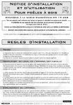 FRANÇAIS d’installation et d’utilisation pour poêles à bois CONFORME À LA NORME EUROPÉENNE EN13240 Tous nos appareils sont conformes aux normes en vigueurs et répondent aux exigences de sécurité. L’installation de nos appareils doit être effectuée par du personnel compétent, en respect avec le D.T.U. 24.2.2. TOUTES LES RÉGLEMENTATIONS LOCALES ET NATIONALES AINSI QUE LES NORMES EUROPÉENNES DOIVENT ÊTRE RESPECTÉES LORS DE L’INSTALLATION ET L’UTILISATION DE L’APPAREIL. Consulter attentivement cette notice générale ainsi que le complément notice particulière également livré avec l’appareil. РУССКИЙ POLSKI ΕΛΛΗΝΙΚΌΣ PORTUGUÊS NEDERLANDS ITALIANO ESPAÑOL ENGLISH DEUTSCH NOTICE TIRAGE La dépression dans le conduit de fumées doit être comprise entre 6 et 12 Pascals. Cette mesure est vérifiable en chauffe à l’aide d’un manomètre. Un modérateur de tirage est nécessaire dans presque tous les cas pour réguler le tirage aux valeurs préconisées. Il est interdit de raccorder l’appareil sur un conduit de fumées desservant d’autres appareils. VENTILATION DU LOCAL OÙ L’APPAREIL EST INSTALLÉ Le fonctionnement de l’appareil nécessite un apport d’air supplémentaire à celui nécessaire au renouvellement d’air réglementaire. Cette amenée d’air est obligatoire lorsque l’habitation est équipée d’une ventilation mécanique. La prise d’amenée d’air doit être située soit directement à l’extérieur, soit dans un local ventilé sur l’extérieur, et être protégée par une grille. La sortie d’amenée d’air doit être située le plus près possible de l’appareil. Elle doit être obturable lorsqu’elle débouche directement dans la pièce. Pendant le fonctionnement de l’appareil, s’assurer qu’elle soit libre de toute obstruction. La section d’entrée d’air doit être au minimum égale au quart de la section du conduit de fumée avec 2 un minimum de 50 cm . Il peut être nécessaire de stopper l’extracteur de la ventilation mécanique pour éviter le refoulement des fumées dans la pièce lors de l’ouverture de la porte. Si d’autres appareils de chauffage peuvent être mis en service simultanément, prévoir des sections d’amenée d’air frais supplémentaires pour ces appareils. EMPLACEMENT DE L’APPAREIL L’appareil doit être placé sur un sol avec une capacité portante suffisante. Si une construction existante ne satisfait pas à cette condition préalable, des mesures adéquates (par exemple : l’installation d’une plaque de répartition des charges) doivent être prises pour permettre au sol de supporter l’appareil. L’emplacement de l’appareil doit permettre un accès facile pour le nettoyage de l’appareil, du conduit de raccordement et du conduit de fumées. FRANÇAIS РУССКИЙ POLSKI ΕΛΛΗΝΙΚΌΣ PORTUGUÊS NEDERLANDS ITALIANO ESPAÑOL ENGLISH DEUTSCH RÈGLES D’INSTALLATION Utiliser uniquement les combustibles recommandés : bois dur (Hêtre, Charme, Chêne), sec (moins de 20% d’humidité soit un minimum de 2 ans de stockage sous abris après la coupe) et de dimension adaptée aux caractéristiques de l’appareil. Eviter l’utilisation des bois résineux (pins, sapins, épicéas ... ) qui nécessitent un entretien plus fréquent de l’appareil et du conduit. Le tiroir cendrier doit toujours rester dans l’appareil sauf lors du décendrage. Effectuer un décendrage quotidien. Vider le contenu du cendrier dans un récipient métallique ou ininflammable exclusivement réservé à cet usage. Les cendres, en apparence refroidies, peuvent être très chaudes même après quelques temps de refroidissement. Pendant le fonctionnement les organes de manœuvre et la poignée de la porte peuvent être très chauds. Pour éviter les brûlures, utiliser la « main froide » fournie avec l’appareil pour les manipuler. Le fonctionnement continu en allure lente, surtout pendant les périodes de redoux (tirage défavorable) et avec du bois humide, entraîne une combustion incomplète qui favorise les dépôts de bistre et de goudron : - Alterner les périodes de ralenti par des retours en fonctionnement à allure normale. - Privilégier une utilisation avec de petites charges. CONSEILS D’ENTRETIEN Faire ramoner par des spécialistes votre conduit de cheminée au moins deux fois par an, dont une fois pendant la saison de chauffe. A cette occasion faites nettoyer et vérifier l’ensemble de l’appareil et du conduit de raccordement par un technicien compétent qui : - Nettoiera complètement le poêle, vérifiera les jonctions des différentes pièces, démontera et contrôlera le déflecteur et sa position, celui-ci étant incliné en appui en haut sur l’avaloir et maintenu vers le bas sur le fond. - Procédera si nécessaire au changement des composants usés (joint de porte notamment). Après une longue période d’arrêt vérifier l’absence d’obstruction du conduit avant un rallumage. NE PAS UTILISER DE SPRAY POUR NETTOYER LE VITRAGE. SA DIFFUSION SUR LES SURFACES EN FONTE PEINTE DE L’APPAREIL ABÎME LEUR REVÊTEMENT DE MANIÈRE IRRÉVERSIBLE ! RÈGLES DE SÉCURITÉ Les objets en matériaux inflammables ou se dégradant sous l’effet de la chaleur doivent être gardés à une distance d’au moins 1,5 mètres de toutes les surfaces du poêles notamment les vêtements ou objets éventuellement mis à sécher devant l’appareil. Si un feu de cheminée se déclare, fermer la porte de rechargement, puis les arrivées d’air primaire et secondaire, ensuite contacter immédiatement les autorités locales de lutte contre l’incendie. Pendant le fonctionnement, toutes les surfaces de l’appareil sont chaudes : attent ions aux brûlures ! Eviter d’installer le poêle dans un endroit où il y a beaucoup de passages. Ne jamais tenter demodifier l’appareil. Ne jamais mettre dans l’appareil des charges de bois supérieures à celles indiquées dans le