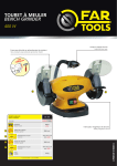 TOURET À MEULER BENCH GRINDER 400 W Lampe et support d’outil Light and tool rest 2 1 TOURET À MEULER BENCH GRINDER CBG 150/200 3431541102354 Puissance Motor Power 1 0 Dimensions de l’outil tool size 1 0 2 Vitesse de rotation Rotation speed Dimensions de l’outil tool size kg Poids weight 140 min-1 200 x 20 x 40 mm (A80) 2950 min-1 150 x 12,7 x 20 mm (A36) 9,8 kg Consommables - Consumables Interrupteur magnétique de sécurité Safety magnetic swich Ecran pare-étincelles en polycarbonate très résistant Very resistant polycarbonate protection shield 110235-C-20100611 2 Vitesse de rotation Rotation speed 400 W (Alu) 113391-Fiche-B-20090126 Gencode ">