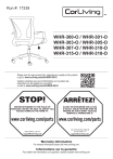 Run #: 17339 WHR-300-O / WHR-301-O WHR-303-O / WHR-305-O WHR-307-O / WHR-310-O WHR-315-O / WHR-318-O Please scan for more product info, instructions or recalls on this product: or go to: www.corliving.com/info/WHR-300-O Veuillez numériser pour plus d’informations sur le produit, des instructions ou des rappels sur ce produit: ou aller à: www.corliving.com/info/WHR-300-O STOP! ARRÊTEZ! BEFORE RETURNING TO THE PLACE OF PURCHASE, WE MAY BE ABLE TO ASSIST YOU. PLEASE COMPLETE THE FORM AT: AVANT DE RETOURNER SUR LE LIEU D'ACHAT, NOUS POUVONS ÊTRE EN MESURE DE VOUS AIDER. VEUILLEZ REMPLIR LE FORMULAIRE À: www.corliving.com/parts www.corliving.com/parts OR EMAIL US AT: OU ENVOYEZ-NOUS UN E-MAIL À: support@corliving.com support@corliving.com Warranty Information For warranty information please visit www.corliving.com. Informations sur la garantie Pour obtenir des informations sur la garantie, veuillez consulter www.corliving.com. Assembly Instructions / Instructions de montage Parts list / Les parties énumèrent Insert castors into the chair base. Insérez les roulettes dans la base de la chaise. Insert the gas cylinder into the base. Insérez la bouteille de gaz dans la base. H(a) Attach the chair control to the seat. Fixez la commande du fauteuil au siège. H(c) Attach the armrests to the backrest. Fixez les accoudoirs au dossier. H(b) H(c) Attach the armrests to the seat. Fixez les accoudoirs au siège. Join the upper and lower assemblies. Rejoignez les assemblages supérieur et inférieur. ">
