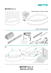 BETTEPOOL III Lieferung / Delivery / Livraison / Levering Rev. 3 / 27.05.13 / Z0011461 11 12 13 14 15 16 17 18 19 20 21 2 Ø 8 mm 6 mm SW 10 SW 30 AC E TO N ent trumg s n i tui eug erk rkz ent w e W em l imp 10 9 8 7 6 5 4 3 2 1 41 A BETTEPOOL III INSTALLATION 1 B ➊ Magnet / Magnet Aimant / Magneet ➋ ➌ C Magnet / Magnet Aimant / Magneet D E F 30 ± 3 mm 30 ± 3 mm 1 2 2 3 4 5 6 7 8 9 1 0 1 16 1 1 2 1 3 1 4 1 5 1 6 BETTEPOOL III INSTALLATION 15 14 13 1 1 21 10 9 8 7 6 5 4 3 2 1 G H ➋ Ø 8 mm ø6 ø6 ➌ ➊ J ➍ Abfluß vorbereiten Prepare drain Préparer égout Afvoer voorbereiden K ➋ ➊ BETTEPOOL III INSTALLATION ➋ ➊ 3 L M Abfluß anschließen / Connect drain Brancher égout / Afvoer aansluiten N O ➊ ➋ P Q ➊ ➋ Magnet / Magnet Aimant / Magneet 4 BETTEPOOL III INSTALLATION R S T Magnet / Magnet / Aimant / Magneet U BETTEPOOL III INSTALLATION 5 V ➋ TO N ➊ ➌ Dry-clean AC E Reinigen Nettoyer à sec Schoonmaken Bette GmbH & Co. KG Heinrich-Bette-Straße 1 33129 Delbrück • Deutschland Telefon +49 5250 511-0 • Telefax +49 5250 511-130 6 info@bette.de • www.bette.de BETTEPOOL III INSTALLATION Bette GmbH & Co. KG UK The Courtyard • Hall Farm • Lockington GB-Derbyshire • DE74 2RH Phone +44 844 800 0547 • Fax +44 844 800 0548 Info@bette.co.uk • www.bette.co.uk Bette GmbH & Co. KG NL Venkelbaan 24 2908 KE Capelle a/d Ijssel Phone +31 10 4423344 • Fax +31 10 2847889 Info@bette.nl • www.bette.nl ">