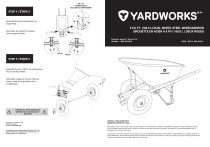 M8 × 20 CARRIAGE BOLT/ BOULON DE CARROSSERIE STEP 4 / ÉTAPE 4 Assemble the axle brackets and tray supportings. 6 CU.FT. (169.9 L) DUAL WHEEL STEEL WHEELBARROW BROUETTE EN ACIER À 6 PI³ ( 169,9 L ) DEUX ROUES Assemblez les supports d’essieux et les supports de bac. Customer support / Service à la clientèle : 1-866-523-5218 M8* 65 SKU# / UGS n° 060-4543-0 M8* 65 STEP 5 / ÉTAPE 5 Assemble the axle. Attach the wheels using the pin and flat washer. Assemblez l’essieu et la roue. Fixez les roues à l’aide de la goupille et de la rondelle plate. TIGHTEN ALL NUTS AND BOLTS/ SERREZ TOUS LES ÉCROUS ET BOULONS Yardworks Canada Toronto, Canada M4S 2B8 For replacement parts and warranty information, call / Pour obtenir des pièces de rechange et des informations sur la garantie, appelez le 1-866-523-5218. LIMITED 4-YEAR WARRANTY GARANTIE LIMITÉE DE 4 ANS This product carries a four (4) year warranty against defects in workmanship and materials. Trileaf Distribution agrees to replace a defective product, within the stated warranty period, when returned to the place of purchase with proof of purchase. This product is not guaranteed against wear or breakage due to misuse and/or abuse. Ce produit est couvert par une garantie de quatre (4) ans contre les défauts de fabrication et de matériaux. Trileaf Distribution s'engage à remplacer un produit défectueux, dans le délai de garantie indiqué, lorsqu'il est retourné au lieu d'achat avec une preuve d'achat. Ce produit n'est pas garanti contre l'usure ou la casse due à une mauvaise utilisation et/ou à un abus. EXPLODED VIEW/ VUE ÉCLATÉE YW6-01 6 cu. ft. (169.9 L) - DUAL WHEEL 6 pi³ (169,9 L) - À DEUX ROUES STEP 1 / ÉTAPE 1 YW6-08 YW6-11 PART | PIÈCE 6 cu.ft. (169.9 L) steel tray/ Bac d’acier de 6 pi³ (169,9 L) Hardwood Handles/ Poignées en acier Legs/ Pattes Leg Brace/ Renfort des pattes QUANTITY| QUANTITÉ PART NO.| PIÈCE N° 1 2 YW6-01 YW6-02 2 YW6-03 1 2 2 2 Leg Supporting/ Support pour patte Plastic Wedges/ Cales en plastique Tray Braces / Renfort du bac Tray Supporting/ Support du bac 2 Axle/ Essieu 1 Nose Guard/ Nez protecteur 1 Wheels/ Roues 2 Axle Brackets/ Supports d’essieu 2 Hardware Bag/ Sac de quincaillerie 1 YW6-04 YW6-05 YW6-06 YW6-07 YW6-10 Assemble the legs, leg supportings and the leg braces togethers. YW6-06 YW6-12 YW6-08 YW6-09 YW6-02 YW6-10 YW6-04 YW6-11 YW6-12 YW6-13 DO NOT tighten any of the nuts before all parts of the wheelbarrow are fully assembled. / NE SERREZ AUCUN des écrous avant que toutes les pièces de la brouette ne soient complètement assemblées. Assemblez les pattes, le support pour pattes et les renforts des pattes ensemble. M8 × 20 YW6-11 YW6-12 YW6-07 STEP 2 / ÉTAPE 2 YW6-05 HARDWARE LIST/ LISTE DE LA QUINCAILLERIE Place the tray sideways on a flat surface, then sequentially assemble the plastic wedges, handles, tray supportings and legs. Placez le bac de côté sur une surface plane, quentiellement les cales, les poignées, les supports du bac et les pattes en plastique. 2× 2× 4× 2× 8× 2× M8 × 130 M8 × 80 M8 × 65 M8 × 55 M8 × 20 2× M8 × 20 CARRIAGE BOLT/ PIN FOR AXLE/ GOUPILLE POUR BOULON DE ESSIEU CARROSSERIE STEP 3 / ÉTAPE 3 M8 × 55 Assemble the nose guard. Assemblez le nez protecteur. 2× WASHER FOR AXLE/ RONDELLE POUR ESSIEU 20 × 2 × Extra/ 2 x de plus FLAT WASHER/ RONDELLE PLATE 20 × 2 × Extra/ 2 x de plus SPRING WASHER/ RONDELLE À RESSORT 20 × NUTS ÉCROU M8 × 55 M8 × 130 M8 × 80 ">